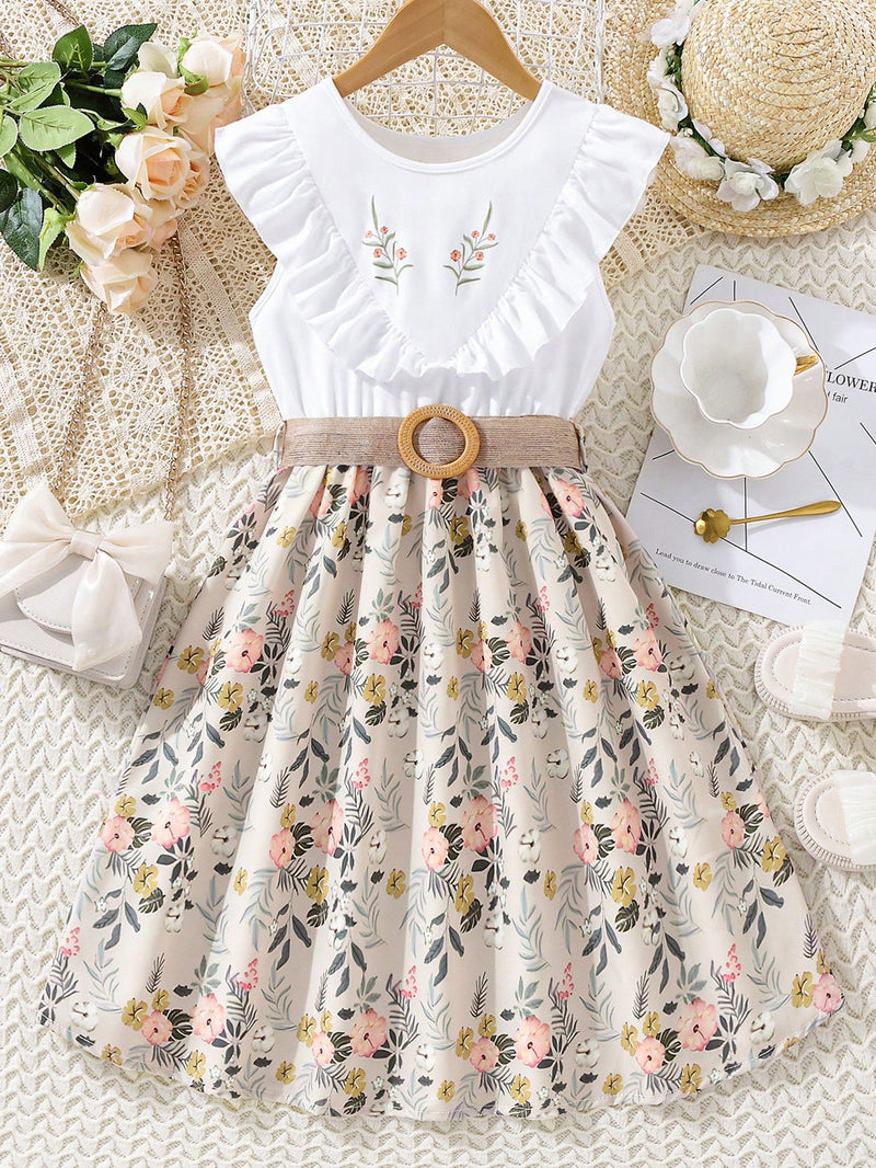 Pastel Rainbow Striped Ruffle Dress for Girls (1–10 Years)