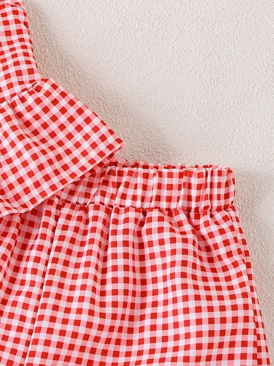 Red Gingham Bow Top & Shorts Set for Girls (1–6 Years)